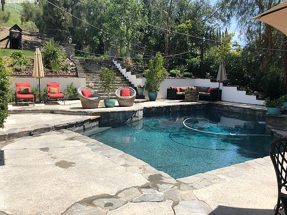 Gorgeous Modern Farm House with room and plans for expansion in the prestigious, guard-gated community of Hidden Hills. Perfectly appointed on an expansive, mostly flat, golf course reminiscent 1.5 acre lot. This home has been completely updated in 2019 with designer finishes throughout. Featuring 6 bedrooms, 6 baths, open great room w/wood beamed ceilings, formal dining room, Oak wood flooring & 4 sets of doors that open to the outdoor entertaining space. The gourmet chef's kitchen is complete w/custom cabinetry, gorgeous natural quartz counter tops, a double oven, 2 dishwashers, Thermador and Sub-Zero appliances. Main floor master bedroom over looking the pool w/ vaulted ceilings & quartz fireplace. The spa like master bath is stunning w/all Cararra marble finishes, an open walk in shower, free standing tub & double vanities w/ marble counter tops. The backyard is the utmost in outdoor entertainment experiences w/ a lounge/fire pit area over looking the pool & a sprawling park like lawn. Other features include: private upstairs loft perfect for a home office, custom exterior LED lighting, 5.1 surround sound w/ smart features all controlled by an IPAD, entire house wired for home automated system w/room for 12 HD security cameras. This home comes w/previously HOA approved, architectural plans to expand the square footage up to 8,000 square feet. One of the most highly sought after streets in the exclusive Hidden Hills community.
