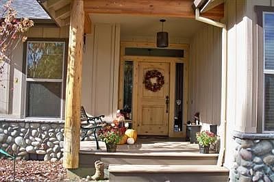 Experience a warm comfortable feeling in this beautiful 3 bed, 2 full bath Craftsman home with rustic finishes and distressed hardwood floors on 1+ treed acre. Exquisite hickory cabinets compliment granite countertops in spacious kitchen overlooking 20x60 deck & landscaped backyard. Extensive rock accents surround fireplace. Heated travertine floors make soaking tub in Master Bath even cozier. Security system, A/C & solar tube lighting. And the 1075 sq ft garage has lots of room for 4 cars or your toys!
