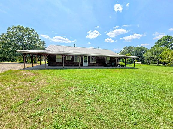 Find the perfect blend of rustic charm and modern comfort with this stunning 3-bedroom, 2-bathroom log home with 1,344 square feet on just over 3 acres of peaceful countryside. Enjoy breathtaking mountain views, a stocked pond teeming with catfish and bass, and nearby access to the Ouachita National Forest-making it an outdoor enthusiast's paradise. Step inside to a warm and inviting interior featuring beautiful knotty pine walls, vaulted ceiling, an open-concept kitchen and living area, and a cozy wood-burning stove. The home also has central heat and air, ensuring year-round comfort. Each bedroom offers private access to the expansive wrap-around porch, where you can relax and take in the serene surroundings. The master suite has 2 walk-in closets and the bathroom features a luxurious jacuzzi tub, perfect for unwinding after a long day. You can keep your personal property protected with the built-in gun safe. This property also boasts a full RV hookup for guests, a storm cellar for added security, and a variety of fruit and pecan trees, providing seasonal harvests. Whether you're looking for a private retreat or a home with endless outdoor possibilities, this unique property has it all!