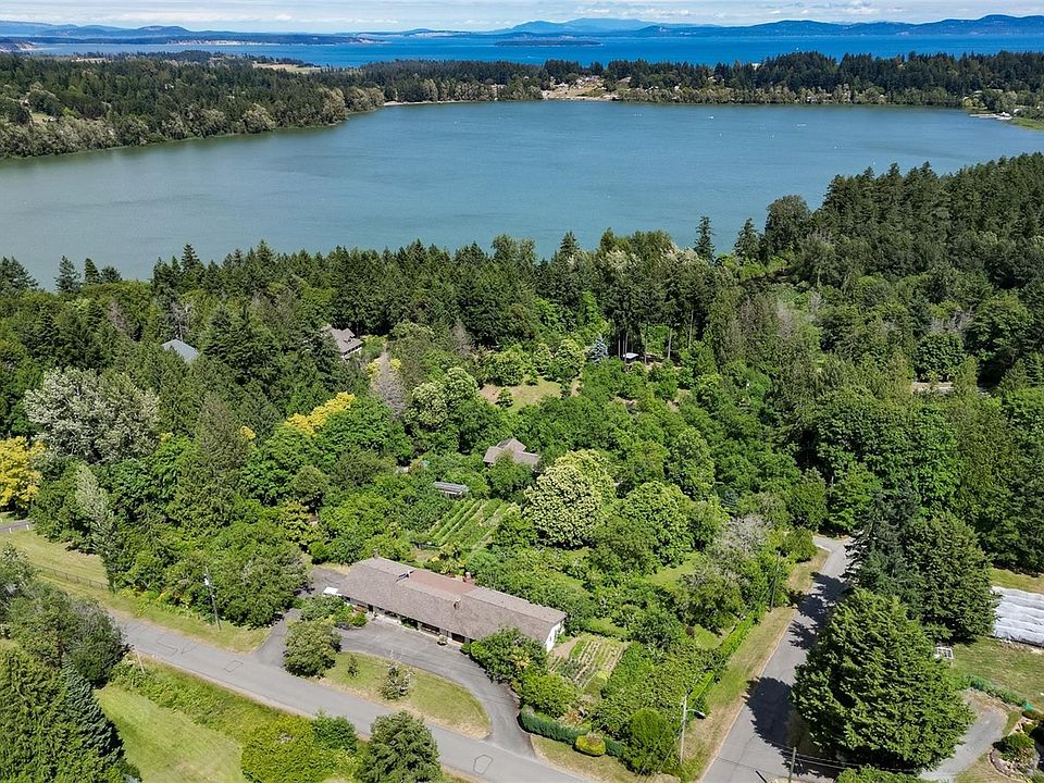 An extraordinary offering for inter-generational living, this legacy 5.23-acre Elk Lake estate features two detached residences with panoramic lake and mountain views. First time offered in 35+ years, the property offers dual access from Forest Hill and Doyle Road and includes mature orchards, fruit and nut trees, terraced gardens, and trails leading to peaceful lakefront paths. The 3,000+ sq.ft. main home features 4 bedrooms—all with ensuites—an open kitchen and family room, and a large deck with handcrafted forno.This home offers unmatched potential to update without changing any of the layout. A separate one-bedroom suite offers ideal space for guests, caretakers, or rental. The second residence includes 2–3 bedrooms, full kitchen, and double garage—perfect for extended family or multi-generational use. Peaceful, private, and beautifully cultivated—this is a once-in-a-generation opportunity to own a legacy property in one of Vancouver Island’s most coveted lakefront communities.