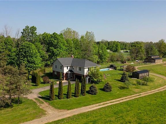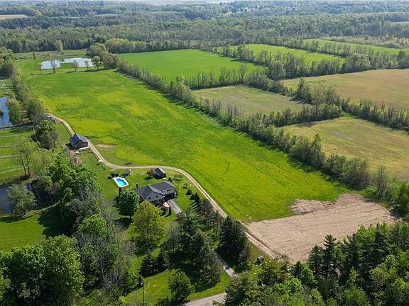 Welcome to a prestigious & tranquil 75-acre retreat in the heart of North Burlington, where comfort meets rural charm on this expansive farm. Nestled amidst lush landscapes, this magnificent property boasts a spacious 3,907 square foot, 2-storey, 5 bedroom, 4 bath home, offering an exceptional blend of convenience and luxury. The main floor features a bedroom & ensuite, perfect for guests or multi-generational living. The kitchen is equipped with restaurant-grade appliances, making it a culinary enthusiast's dream. The 2nd floor includes a 2nd large family room, ideal for extra privacy, kids space, & entertaining, while each bedroom is generously sized. The large living spaces along with high-speed internet ensuring a blend of modern living with the tranquility of country life. Large windows throughout the home provide stunning views of the picturesque landscape, sunsets, sunrises, the serene 2-acre pond & extensive walking/horse trails that invite exploration and relaxation. Beyond the main residence, the property includes an inground fibreglass pool, a 34' x 48' barn, a massive shed, & an outbuilding ideal for various agricultural pursuits or as a versatile space for hobbies & storage.
