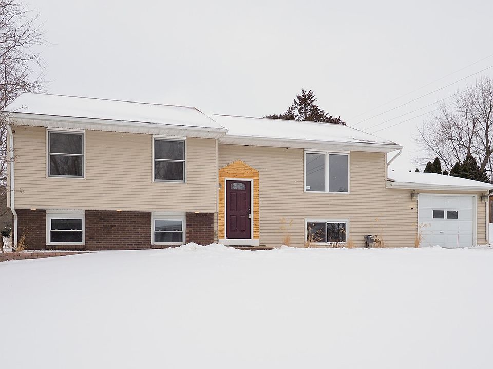 Beautifully updated 4 bedroom, 2 full bath home with over 1800 sq ft of living space! This bi-level is move in ready with a newer roof, insulated walls, extra insulation in the attic, and a new driveway! The main floor features open concept living with a nice sized living room, eating area with a slider to the deck, and gorgeous kitchen. The kitchen has a center island, great cabinet space, and some open shelving. There are 3 bedrooms on this level along with a full bath. The lower level features a family room with wood burning fireplace and the master suite with a HUGE walk in closet. There is also laundry space. Spacious backyard has a nice sized deck and a storage shed. This is a great home with a one year home warranty for peace of mind!