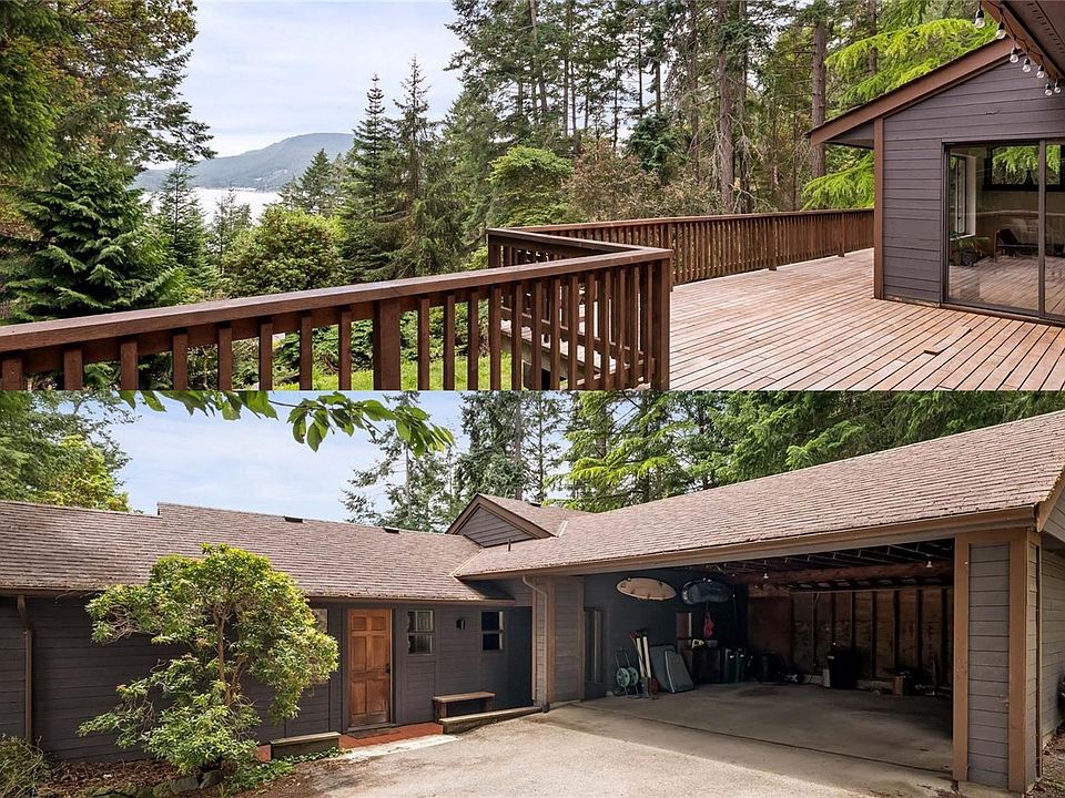 Stunning west coast home with breathtaking ocean & mountain views in the heart of Maple Bay. With design & function in mind this remodelled 2 bed + den, 2 bath 1670sqft home rests on a captivating & private 0.59acre lot in a natural setting on Maple Mtn. Featuring modernized charm with updated exterior/interior paint, engineered flooring, post & beam deck, modern fixtures, wood accents, updated bathrooms & stylish kitchen. There is a cozy sunken living room w/fireplace, dining area, breakfast nook, kitchen & primary w/ensuite - all with south facing ocean views & deck access. The 2nd bed, 4pc bath, den & laundry room complete the home & the over height crawl space makes storage easy. Outdoors offers room to expand the yard, garden, parking or even add a shop. Access from the road above for RV/boat parking may be possible for a very minimal fee: buyer to verify. Walk to beaches, hiking, trails & a short drive to restaurants, pub, marina & more. EV charger, new attic insulation & more.