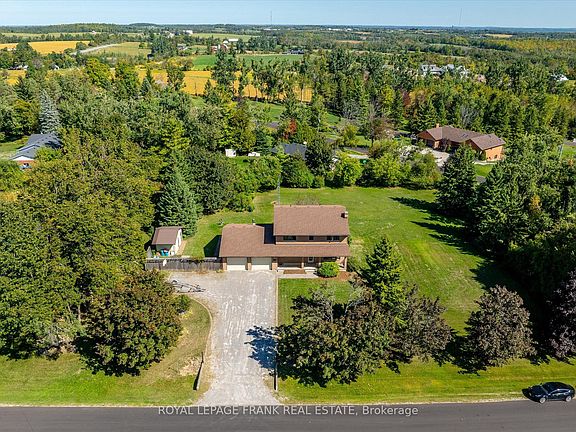 Welcome to this beautiful brick country home, perfectly situated on a 1-acre lot in a quiet cul-de-sac on the outskirts of town. Surrounded by other well-kept homes and overlooking open fields, this property offers the best of country living with space, privacy, and room for the whole family. Step inside to a large, two-storey foyer that sets the tone for this bright and spacious home. The main floor offers a den/office, a living room with cozy gas fireplace, a formal dining room, and an updated kitchen with a large centre island and walkout to a huge deck with canopy perfect for family gatherings and summer entertaining. A mudroom with main floor laundry adds everyday convenience. Upstairs, you'll find the primary suite with walk-in closet and private ensuite, along with four additional bedrooms and a second full bath plenty of space for everyone, all on the same level. The full basement provides additional living space with a partially finished family room with gas fireplace, a storage/utility room, and a separate area that could serve as a home office, gym, or hobby room ready to be finished exactly the way you want it. Additional features include a new natural gas furnace (2025), fresh paint throughout, and an attached oversized double garage with wood-burning furnace ideal for hobbyists or extra storage. Lovingly cared for by its original owners, this home is ready to raise its next family. Enjoy country living with room for it all!