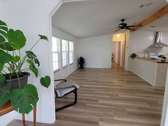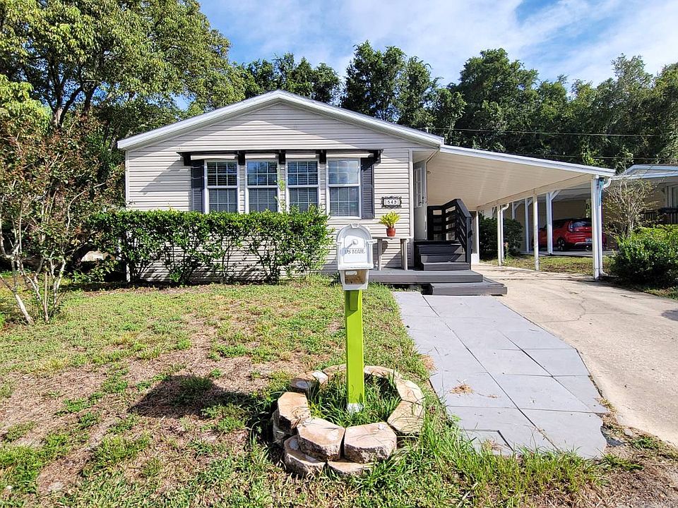 Welcome to your charming, updated 2-bedroom, 2-bathroom home located in the vibrant 55+ community of Hawthorne Hills in DeLand, Florida. This meticulously cared-for 1,248 sq. ft. residence is ready for you to move in and enjoy! As you step inside, you're greeted by a bright and airy Florida room - the perfect space for creating a welcoming first impression or a peaceful plant sanctuary. Flowing from this space, you'll enter the redesigned open-concept kitchen, living, and dining area featuring brand-new cabinets, countertops, and a stunning counter-to-ceiling tile backsplash. Both bedrooms come with spacious walk-in closets, and the two bathrooms have been fully renovated with modern fixtures, new shower/tub combinations, tile surrounds, and vanities - including a double sink in the primary bathroom for added convenience. This home offers ample storage throughout, as well as an indoor laundry area with washer/dryer hookup, leaving room for additional storage in the shed. Outside, you'll find a screened-in porch and a covered carport for added comfort. Fresh paint and new vinyl flooring throughout the home ensure a crisp, updated feel. Located in the desirable Hawthorne Hills community, you'll enjoy resort-style amenities such as a sparkling pool, outdoor kitchen, clubhouse activities, and serene corners for reading or working remotely. Situated just minutes from historic downtown DeLand, Blue Springs State Park, and DeLeon Springs, this home offers the perfect blend of relaxation and adventure. Plus, you're just a short drive from Daytona Beach, New Smyrna Beach, and Orlando - making it easy to enjoy the best of Central Florida. Don't miss your chance to own this beautiful home and start living the Florida lifestyle today!