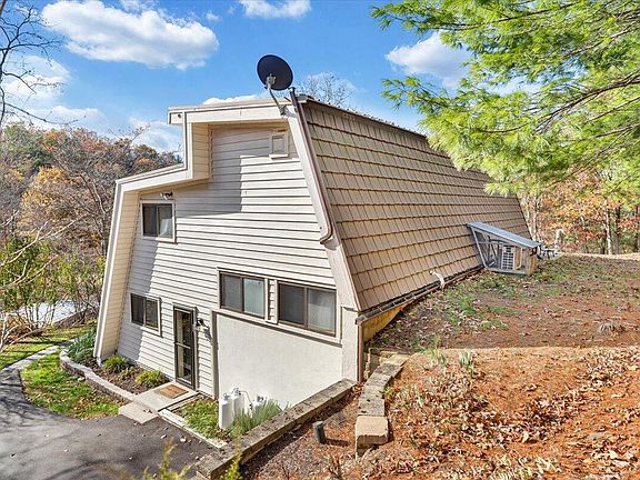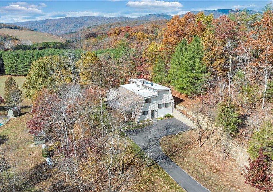 Unique 21/2-story home on 39.77 acres offering a blend of open and wooded land, just 45 minutes from Roanoke. Built in 1986, this 2,655 sq ft, 4 BR, 2.1 BA residence exudes warmth with rich poplar and oak wood finishes originally harvested from this property, cathedral ceilings, built-in bookshelves, and a two-sided gas log fireplace. The first floor features radiant-heated tile floors and an open kitchen with stainless appliances, while oak floors enhance the upper levels. Enjoy fiber optic internet and cable, two Mitsubishi mini-splits, and an exterior wood boiler for efficient heating. Relax on the composite deck or screened porch and take in the views. A 4-car insulated detached garage, pantry, and efficient storage complete this character-filled retreat!