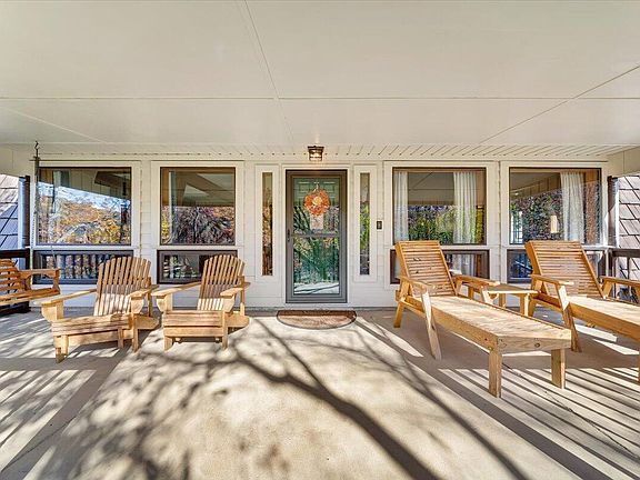 Gas log fireplaceComposite deckScreened porchCathedral ceilingsBuilt-in bookshelvesOak floorsRadiant-heated tile floors