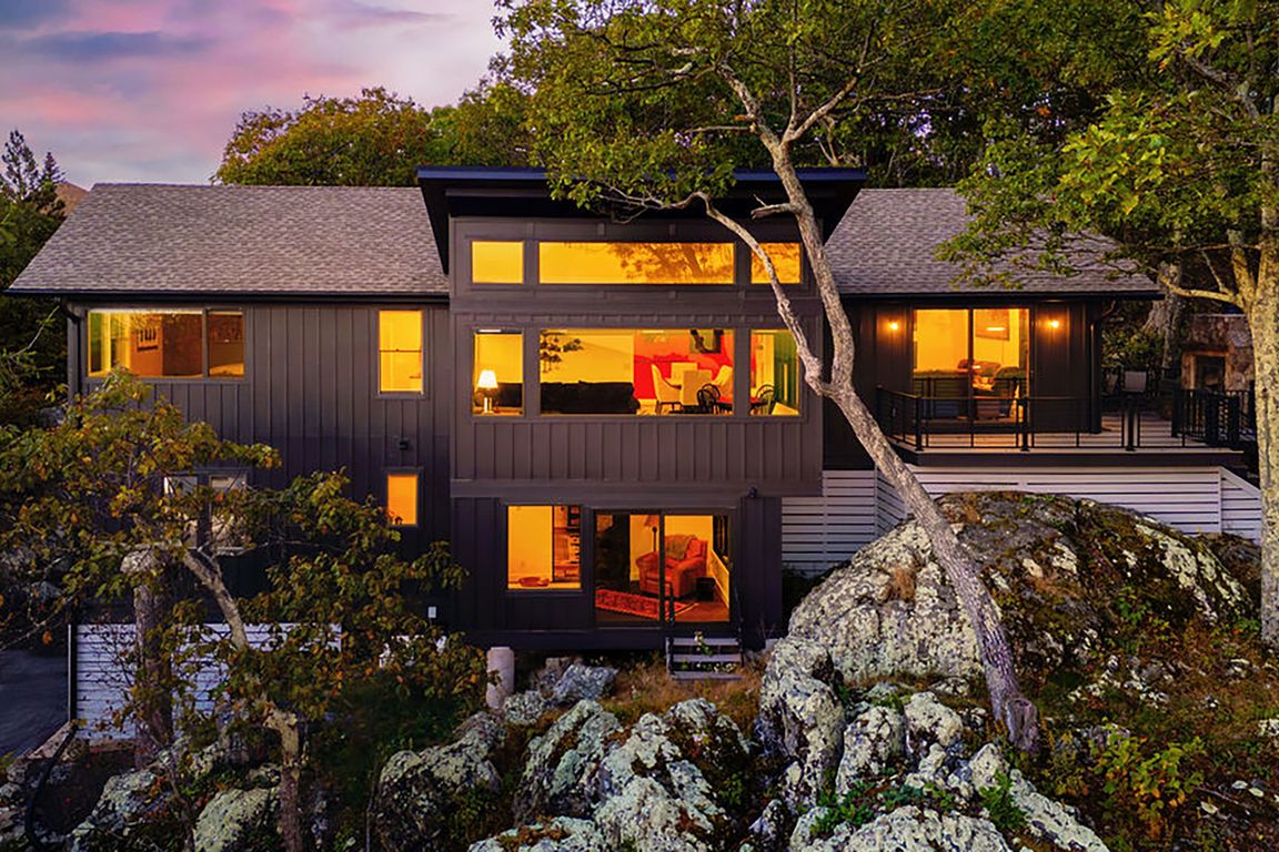 Bright sunroomTwo-sided stone wood-burning fireplacePrivate sunroomBreathtaking year-round southern viewsNatural rock formationsHighest elevationWine cooler