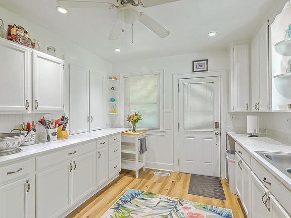Spacious rear deckGenerously-sized roomsSprawling lotAdorable and efficient kitchenMassive backyardWarm natural light