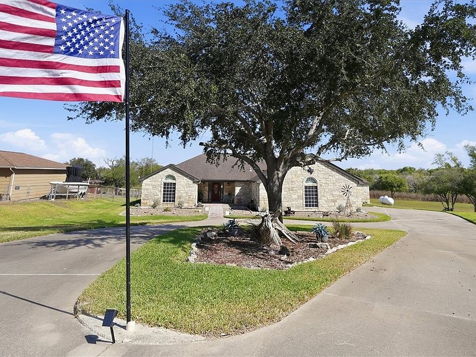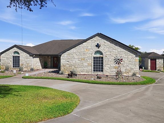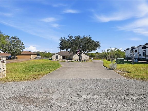 Gorgeous Lakeside Getaway on Lake Corpus Christi! Nestled in the quiet Barbon Estates Subdivision in Sandia, Texas, this beautiful 4-bedroom, 2.5-bath home offers 2,419 sq. ft. of living space on 2.05 meticulously landscaped acres. Enjoy stunning lake views from the spacious living area featuring large picture windows and a cozy gas fireplace. The kitchen is perfect for entertaining with granite countertops, stainless steel appliances, breakfast bar, and island. The primary suite overlooks the backyard and includes a large en-suite bath with dual walk-in closets. Each bedroom has its own walk-in closet, with multiple hall closets providing abundant storage throughout. Step outside to your private retreat featuring a saltwater pool, hot tub, butterfly garden, raised vegetable garden with greenhouse, and pier. The impressive barn/workshop includes a full kitchen and two apartments—each with a bathroom and kitchenette—ideal for guests or gatherings. A large parking area accommodates all your lake toys, plus there’s an RV hook-up. Additional highlights include a water well, sprinkler system, two septic systems, and solar panels on both the home and barn. This one-of-a-kind property offers the perfect blend of comfort, functionality, and peaceful lakeside living—close enough to Corpus Christi for convenience yet far enough away to relax and unwind.