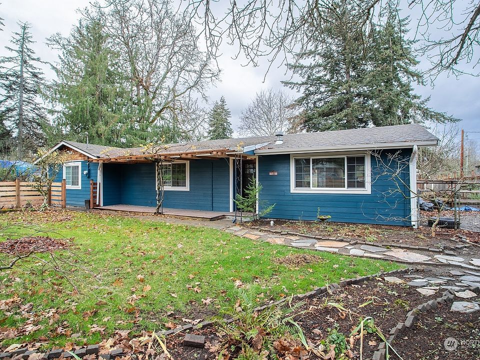 Rarely available charming rambler on sprawling 12,000 sq ft lot. Primary suite features private sitting area, custom built cabinets in the walk-in closet and a sap-inspired bath with soaking tub, pedestal sink, slate tiles and warming wood accents. secondary bedrooms feature solid wood wainscoting and large closet space. Hall full-bath updated w/ glass doors, large storage and natural touches. Acacia hardwood floors throughout. New deck & pergola overlooking well established garden space ready for spring plantings. Winding stone walkways line up with ample parking for all your favorite toys, room for RVS, boats and more inside a gated area. Winding wisteria adorn your covered rocking chair porch with a view of your fenced garden entrance.
