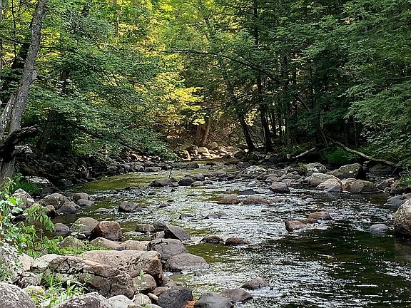 Located in the eastern Adirondacks, this 4 acre parcel has over 500' of frontage on the North Branch of the Boquet River, which is a gorgeous stream with rapids and pools. The river is stocked annually with brown and brook trout, with a native population of brook trout also present. The land is off-grid and features a level and secluded building site on a bluff overlooking the river, with a trail leading to a pretty pool in the shade of hemlocks and pines. The parcel is very nicely wooded with a mix of hardwood and evergreen trees. The property is in a great location, with the High Peaks of the Adirondacks nearby to the west, and the vast and beautiful Lake Champlain to the east. Lake Placid, Plattsburgh, and Burlington,Vt are in close proximity for shopping and dining. This is a great location for an Adirondack cabin.