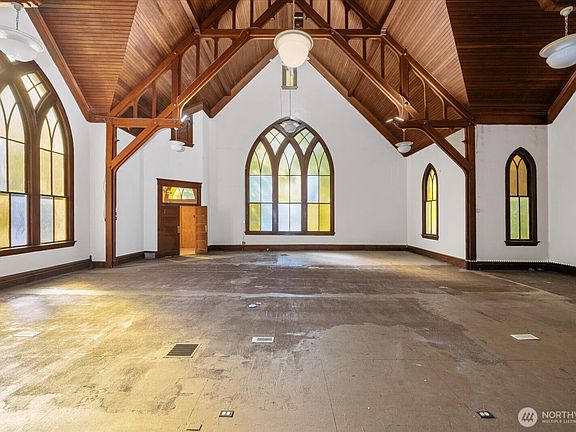 HISTORIC CHURCH: Incredible architecture with classic design, arch ceiling with gothic style craftsman style wood detail. Over 7,348 Square feet for $425,000? That's only $57.84 per sq. foot. Amazing price for all that is here. Over 3,674 sq. feet on the main floor alone. Basement has been used as a two bedroom apartment with 3/4 bath (double sink) and half bath along with full kitchen with utility room. What ever concept you can imagine, this is the blank canvas to paint to fulfil your dream.