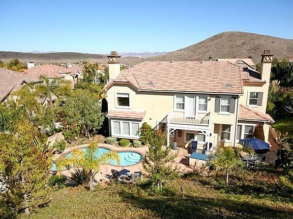 Offering a handsome executive home in The Oaks, a prestigious gated community in Wood Ranch. Completely refreshed, this gracious home is the property you have been waiting for! Located on a cul-de-sac the elegant drive leads the way to garaging for 4 cars and the entrance features a beautiful fountain welcoming your guests. The foyer with 18' ceilings leads to a living room with beautiful windows looking out to the private backyard. There is also a powder room and an en-suite office/den downstairs that could easily be a 5th bedroom. The private dining area and butler's pantry set the stage for great dinners, and the family room is open to the kitchen which both have beautiful views into the back yard. The sparkling pool and spa, covered patio and outdoor kitchen area all work together to create a private oasis. Up the dramatic staircase to the second level you will find the Master Suite with a private deck and a beautiful en-suite bath that will ease away all of your cares. Plenty of closet space, a soaking tub and a separate shower area all allow for comfort and convenience. A Jack & Jill bath serves 2 nicely sized bedrooms, and another en-suite bedroom rounds out the sleeping areas. The loft area offers many choices for use, study or play!