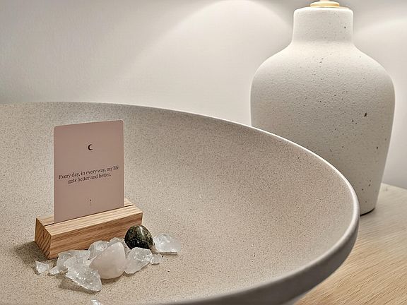 High ceilingsCharacter and charmRecessed lightingCustom california closetBlonde oak hardwood floorsWood slat wall detailsCeiling fan