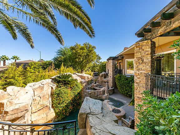 Welcome to this exceptional split-level home in the prestigious McDonald Highlands and Dragon Ridge Golf Club. Blending elegance with comfort, this residence showcases timeless stone and wood accents in an exceptionally private, resort-like setting. A long driveway provides ample parking and leads to the gated entrance and dual two-car garages. Featuring five bedrooms, including a luxurious primary suite, and 4.5 baths, the home is thoughtfully designed and fully turnkey complete with premium furnishings and linens. Enjoy a spacious family room, chef's kitchen with high-end appliances, and both formal and casual dining areas perfect for entertaining. An optional home office space is ideal for remote work. Step outside to your private oasis with sparkling pool, spa, and multiple areas ideal for gatherings and everyday living. Located off Val Verde Rd and Horizon Ridge Pkwy 10 minutes from the airport and 15 minutes from the Las Vegas Strip this residence defines refined living.