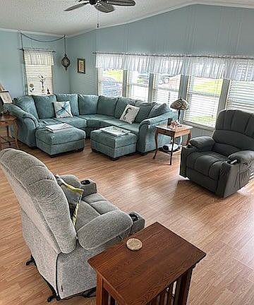 Spacious 2 bedroom, 2 bath home with 1,680 sq. ft. of living space in a desirable active 55+ lakefront park. This move in ready home features: