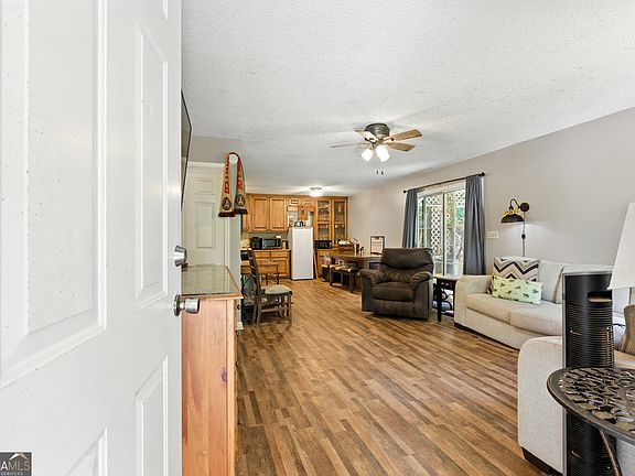 Looking for peace and quiet? This property delivers! Nestled on just over 3 acres, this charming home features 2 bedrooms, 1.5 bathrooms, and a flexible office or small guest room. The kitchen flows seamlessly into the dining area and den, creating a comfortable space for everyday living. Step out onto the covered porch to breathe in the fresh mountain air and take in views of the pond just down the driveway.