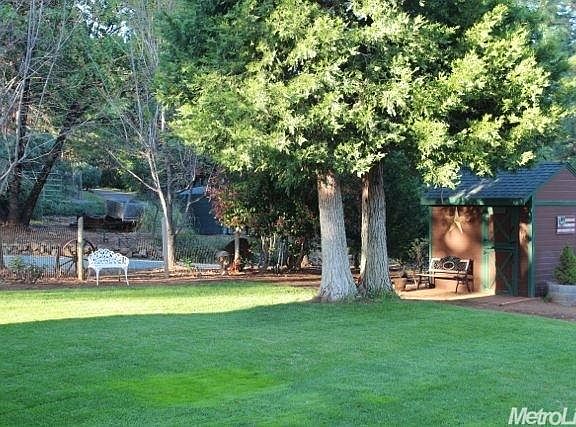 Opportunity to enjoy this IMMACULATE home with beautiful mountain VIEWS. Located near Jenkinsen Lake yet minutes from town. Many features on this 2.5 acres include: large 2+ car garage, RV pad with electrical & dump station, Fire pit, Garden area, Deck built with spa set up, 2500 gal water tank, and more. Move in ready with updated Kitchen and bath, new stainless steel appliances, nice hardwood floors, wood stove and ceiling fans throughout. Refrigerator, washer & dryer included. See it today!