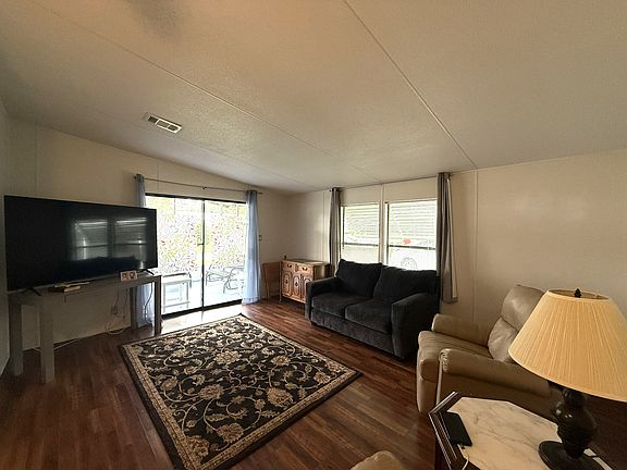 Beautiful 2 bedroom, 2 bathroom remodeled home features vinyl plank and laminate flooring throughout. Master bathroom with large walk in shower. Guest bathoom with built in Vanity and linen closet. Screened in lanai at the front of the home and an oversized shed for all of your storage needs. NEW AC January 2025. This one will not last long! Call today to schedule an appointment to view this home located in a 55+ Community.
