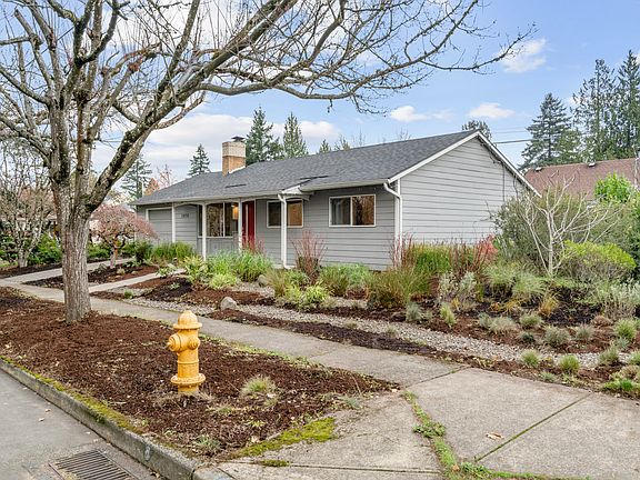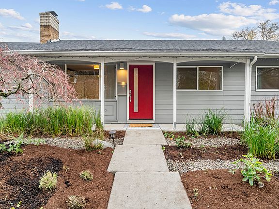 This cheerful Mid-Century Ranch sits right in the heart of Downtown Beaverton near your favorite cafes, breweries, parks, and the beloved Saturday Beaverton Farmers Market. Inside, you'll find a light-filled interior with hardwood floors throughout, a cozy wood-burning fireplace, and large vinyl windows that bring the outside in.