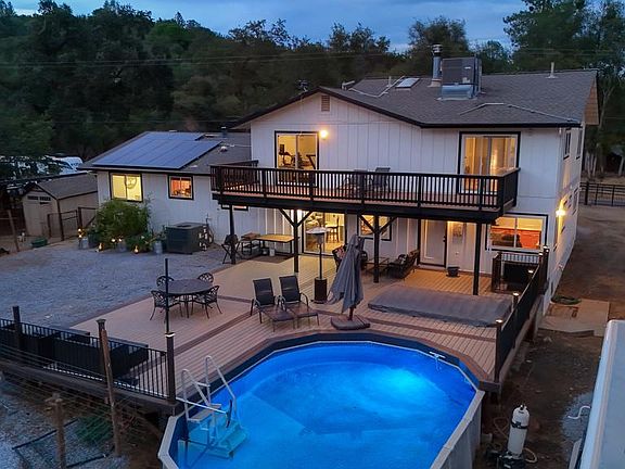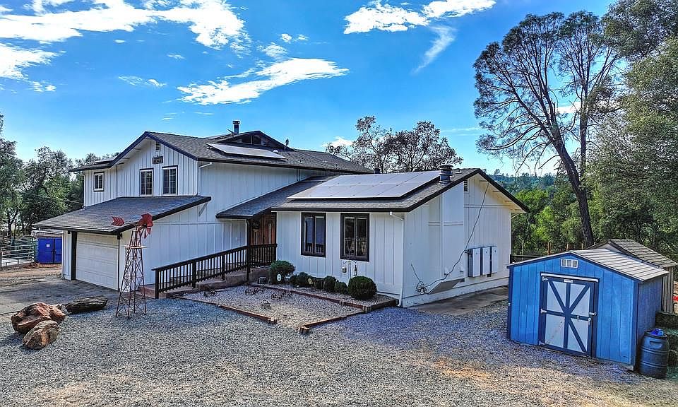 Welcome to 5491 Connie Lane an exceptional equestrian estate nestled in the heart of Shingle Springs. This beautifully updated 5-bedroom, 4-bath home includes a potential 6th room perfect for an office, gym, or guest suite. The property features separate guest quarters with private entrances at both front and rear, ideal for multi-gen living or rental income. For horse lovers, enjoy a professional arena, covered stalls, and a barn with additional stalls. A fenced pasture with a goat shed supports hobby farming. Unwind in the above-ground pool, swim spa, or on the expansive fireproof Trex deck with sweeping views. Major upgrades include leased solar with 3 Tesla backup batteries, allowing the home to run off-grid for power, plus new HVAC, electrical panel, pellet stove, and whole-house fan. Two 20-ft storage containers add convenience. Fully fenced with an electric gate and dual entrances, all just minutes from Hwy 50!