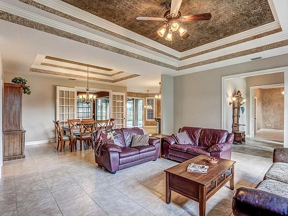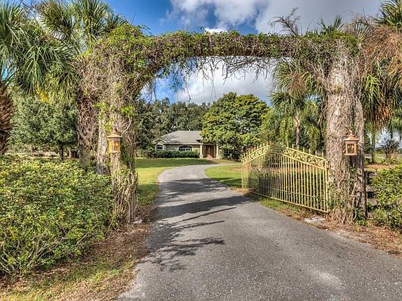 HORSE LOVERS PARADISE ON 10 ACRES- Custom built home with all the upgrades. 2510 square feet of living area with 3 bedrooms and 2 baths with staggered tile in the main living area, and carpet in the bedrooms. Office/den or a 4th bedroom. Spacious living room with tray ceilings with accents. Living room opens up to the dining area and then into the family room overlooking the green pastures and countryside. GOURMET KITCHEN WITH CUSTOM CABINETS granite counter tops, tile backsplash, GE profile appliances, Advantium oven that grills, bakes, and roasts 8 times faster. Master bedroom is large with spacious master bath with double sinks and all glass shower. Perfect home for entertaining and celebrating those family holidays. Lanai with waterfall and all screened measuring 14x30 and insulated. Enjoy those outside BBQ,s with gas grill hooked up to gas line. 8 STALL BARN WITH MAXIMUM VENTILATION WITH CUPOLA ROOF, tack room, and RV parking with hookups. 24x24 WORKSHOP WITH 10 FT DOOR FOR EXTRA STORAGE FOR THOSE TOYS OR LAWN MOWERS AND TRACTOR. Property is fenced and cross fenced with no climb wire fencing with 5 paddocks for rotation and water available for all paddocks. GORGEOUS MAJESTIC OAKS, LUSH GREEN PASTURES, AND BEAUTIFUL GATED ENTRANCE. THERE IS NO PLACE LIKE HOME AND THIS ONE HAS IT ALL. Only 20 minutes to the turnpike.