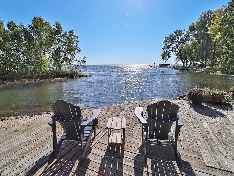 Exquisite Hunters Point Lake Home! Escape to this beautifully renovated 2-bedroom, 2-bath Mille Lacs Lake home, just 15 minutes from Father Hennepin State Park and 30 minutes from Grand Casino. Boasting 103 feet of lake frontage and situated at the waters edge, this 1,400 sq ft year-round retreat offers picturesque sunsets and a protected cove setting. relax on one of the decks or enjoy the sandy lakeshore. All the modern amenities, including stainless steel appliances, granite countertops, luxury vinyl plank flooring, subway tile backsplash, and oak cabinets. The 2-stall tandem garage provides convenient storage or flex space with lakeside overhead door, while the prime location invites outdoor activities on and off the water. don't forget all the winter sports of fishing, spearing, skiing, and snowmobiling!