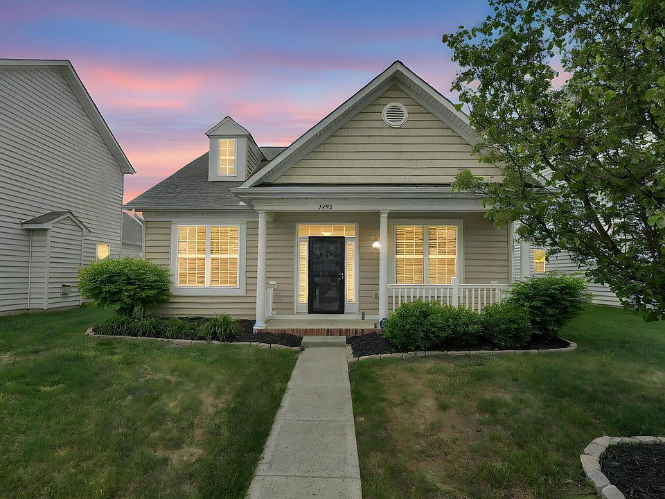 Welcome to this beautiful 3-bedroom, 2-bath ranch nestled in one of Dublin's most sought-after communities—The Falls at Hayden Run. With its inviting curb appeal, covered front porch, and private rear-entry driveway, this home is as charming as it is functional. Step inside to discover an open concept floorplan with soaring ceilings throughout, creating a bright and airy feel from the moment you enter. The spacious great room features a cozy direct vent fireplace and flows seamlessly into the dining area and kitchen—perfect for both entertaining and everyday living. The kitchen is a standout, offering granite countertops, a large center island, subway tile backsplash, and tasteful finishes that elevate the space. Brand new LVP flooring and fresh paint throughout give the home a clean, modern look. The flexible third bedroom can easily serve as a home office or den, while the owner's suite offers vaulted ceilings, walk-in closet, and private en-suite bath. Step outside to your fully fenced private patio w sun setter awning and backyard—ideal for relaxing, gardening, or outdoor dining. There is an electric fence for your pets. The oversized 2-car garage has been drywalled and insulated and includes a large loft space above, perfect for storage or finishing into additional living space. This home is located near scenic green space with full access to the swimming pool and newly renovated fitness center. This prime location is just minutes from shopping, dining, and major highways and even includes a neighborhood gathering spot, The Goat. If your looking for a home that offers low-maintenance living in a vibrant, highly desirable community, this is it! Homes in The Falls at Hayden Run don't stay on the market long—don't miss your chance to make this one yours!