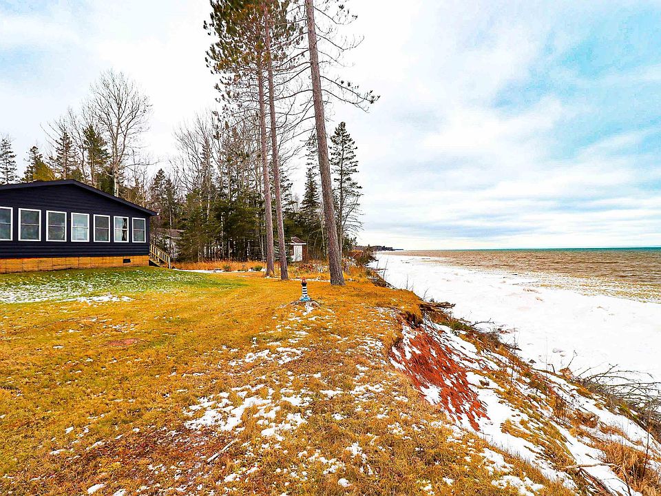 Get cozy on Lake Superior with this home set on over an acre+/- with 164' of lake frontage! The amazing three-season porch spans the length of the home overlooking the lake with breathtakingly beautiful views. An open concept floorplan offers a living room with a gas fireplace, kitchen with walk-in pantry, and plenty of space to dine and relax. The primary bedroom has an en suite full bath with jetted tub and separate shower. A two-car detached garage holds your vehicles and lake gear. Enjoy gathering around the bonfire while admiring magical sunsets. Whether you plan to live here, use as a vacation home and/or an investment rental, this property offers many possibilities for lake living.