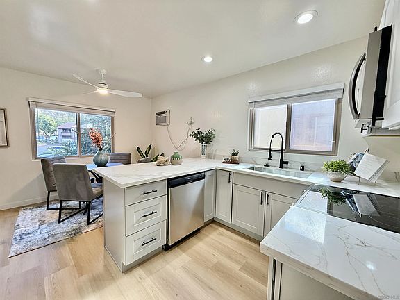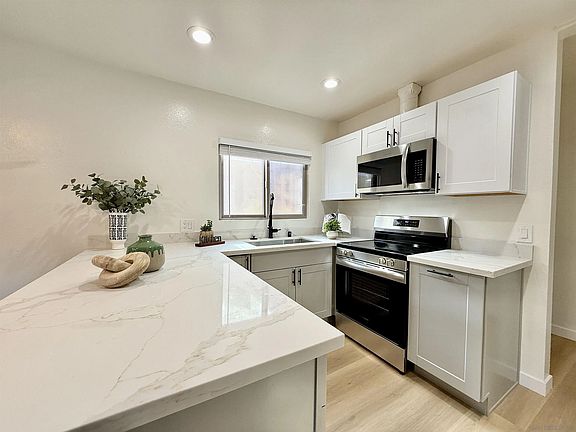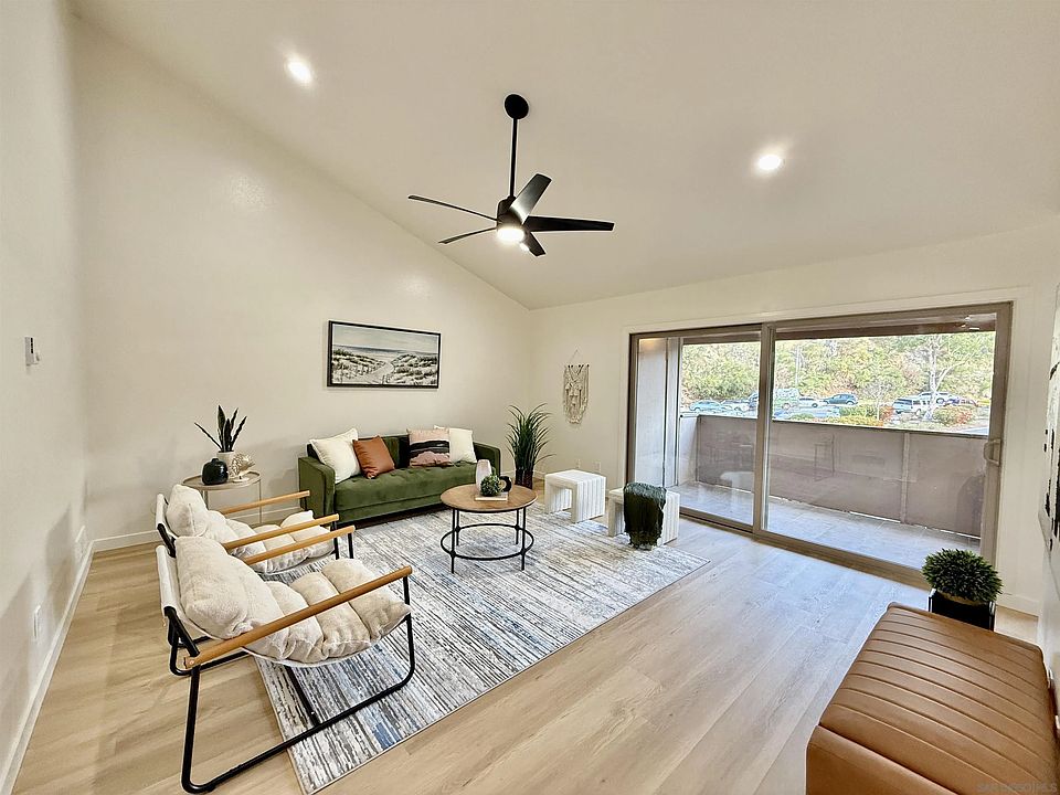 Seller will entertain offers between $550,000 to $599,000! VA APPROVED ! Same model Unit #8 Sold for $610,000 *NEAR SAN DIEGO STATE COLLEGE. Discover your dream home in this beautifully remodeled single-story townhome, perfectly located near SDSU with easy freeway access in the serene Del Cerro neighborhood. This upstairs unit features a spacious 3-bedroom, 2-bathroom layout filled with natural light, high vaulted ceilings, and sliding doors opening to a large balcony—Washer and Dryer hookups. The gourmet kitchen boasts quartz countertops, new cabinets, and stainless steel appliances, while the primary suite offers a luxurious bathroom with granite dual sinks and a large closet. Additional upgrades include newer dual-pane windows, sliding doors, and washer/dryer hookups. As part of the community, enjoy resort-style amenities including a sparkling pool, spa, and BBQ area—perfect for unwinding or hosting gatherings. Don’t miss this opportunity to live in a home that combines comfort, style, and convenience.