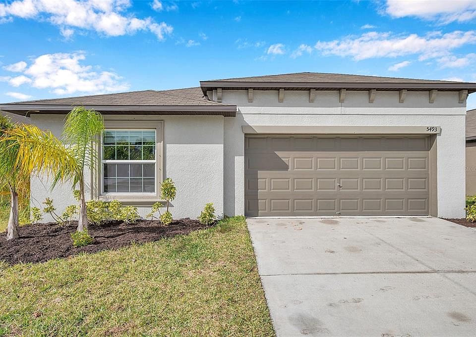 Short Sale. Introducing 5493 Blue Azure Drive, a stunning residence nestled in the sought-after Berry Bay neighborhood of Wimauma, FL. This nearly new 4-bedroom, 2-bath home, constructed in 2022, offers 1,817 sq. ft. of well-designed living space. The open-concept layout maximizes both comfort and practicality, while the kitchen boasts sleek granite countertops, modern stainless steel appliances, and plenty of storage for all your culinary needs. The home’s thoughtful design is highlighted by stylish accent walls, creating an inviting atmosphere throughout. Step outside to a fully fenced backyard, perfect for privacy and outdoor entertaining. As part of the Berry Bay community, you'll have access to a variety of amenities, including a sparkling swimming pool, a clubhouse, playgrounds, a dog park, and sports courts. Ideally situated near I-75 and US-301, you'll have quick and easy access to Tampa, Sarasota, and St. Petersburg. Shopping, dining, and outdoor activities, such as those at Little Manatee River State Park, are all within a short drive. Plus, with the option of an assumable mortgage, this home presents an excellent opportunity to secure favorable financing.