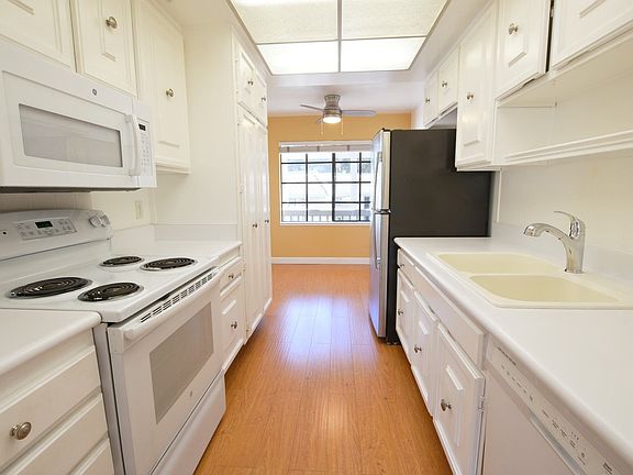 Great opportunity to rent this bright and spacious end unit condo located in the serene, tranquil and highly desired Villages active adult age restricted (55+) community of Evergreen! This unit features laminate plank flooring throughout, updated lighting and fans, private balcony, plantation shutters, full featured kitchen includes stainless refrigerator, range, dishwasher and microwave. The home also offers central AC/ heat and an all in one-washer/dryer combo in unit and access to a shared laundry room. Assigned 1 carport space, but ample additional parking is available on a first come first served bases.