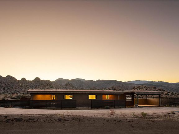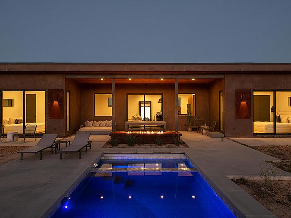 A rare contemporary retreat in Pioneertown with a heated pool, sweeping boulder and Sawtooth Mountain views, and direct access to surrounding hiking trails.Designed with clean modern lines and enormous windows, the home captures the landscape from every angle. The open layout includes a high end chef's kitchen, tall ceilings, and generous natural light throughout, creating a bright and easy living environment.Both bedrooms offer generous en-suite baths, and the primary suite's outdoor shower adds a private, resort-level experience. The heated pool and spa look out over dramatic boulders and ridgelines, while the fire feature, covered patio, and multiple lounging areas support comfortable outdoor living and entertaining.The location is ideal, walking distance to downtown Pioneertown, including Pappy and Harriet's and Red Dog, with quick access to Joshua Tree National Park and the shops and restaurants of the rest of the High Desert.A high-design desert home in a setting that rarely becomes available, offering strong views, modern construction, and standout livability, perfect as a primary residence, luxury retreat, or incredible opportunity as a premium short-term rental.
