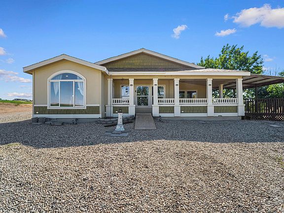 Enjoy the peace and freedom of rural living on this beautiful 2.35-acre property featuring panoramic views of the Owyhee Mountains and surrounding cornfields. This 2,402 sqft manufactured home sits on a permanent foundation and offers easy access to HWY 84, located just 1.3 miles down the road for quick freeway connections. Inside, you’ll find 3 bedrooms, 2 full bathrooms, and generous living space throughout, including a large kitchen with a walk-in pantry, two spacious family rooms, a dining area, a breakfast nook, and a large mudroom. A cozy wood-burning fireplace adds warmth and charm to the home. The primary suite features an attached bonus room that’s perfect for a home office, nursery, or private sitting area. The ensuite bathroom includes a large soaking tub, a walk-in shower, and a spacious walk-in closet. Step outside to enjoy a wrap-around porch and a large deck, perfect for taking in the peaceful views and sunsets. Additional features include solar panels for energy efficiency, natural gas available at the property line, and a private well installed in 2016. The property offers a wrap-around driveway with two access points from the road and ample parking space for RVs or semi-trucks. There’s plenty of room to build a shop or more. Bring your horses, chickens, etc. With no HOA/CC&Rs, you can truly enjoy the freedom this property provides. Your very own oasis on Oasis Rd!