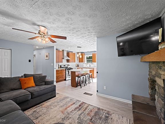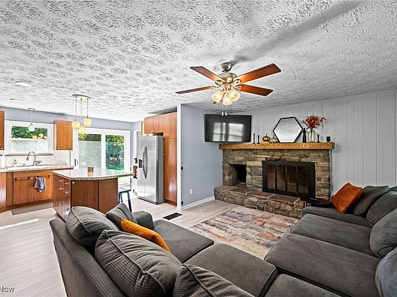 Move right into this well cared for and nicely updated ranch located on a parklike 2 acre lot. This home features a living room with wood burning fireplace which is open to updated kitchen featuring soft close cabinets, pantry, center island, tile backsplash & stainless-steel appliances. A newer vinyl slider gives direct access to deck & patio overlooking the yard. Down the hall you will find three bedrooms with new carpeting 2024, primary bed with walk-in closet & a completely renovated bathroom with title floor, new vanity, new fixtures, tub & surround. Downstairs a large rec room & full bath provides plenty of additional living space. Additional features & updates include: LVP flooring in main living area 2023, Vinyl windows 2024, newer electric breaker panel, hot water tank 2023, furnace 1994, AC 2021, front storm door with roll down screen, newer garage door, garage heater & storage shed. All Appliances & 12-Month “Choice Home Warranty” Included!