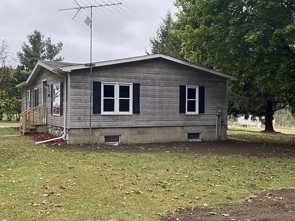 If you are looking for an affordable home, out in the country, in a great school district you will want to check this house out. After you park in the detached garage you enter into a large mudroom with lots of storage. Up a few steps and to the right is the laundry room with bathroom access and to the left is the kitchen with an open concept into the dining and living rooms. This was originally a 3 bedroom home but is currently a 2-bedroom home. With the addition of a wall it could very easily be converted back into a 3-bedroom home. The master bedroom has a bathroom with shower. Each room has large closets and the house has plenty of storage. There is a full unfinished basement with access from the mudroom. New front porch built. This is ready for you to move into. The shed is 60 x 36. It has a cement floor. It has five total doors. Four of them are overhead doors, the first one has a garage door opener and keypad entry, and the fifth bay has a slider door.