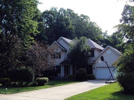 Beautifully maintained Colonial. Open floor plan. Fabulous 2 story foyer with a second story loft overlooking front entrance. Formal dining room and living room. Family room with gas fireplace opens to a beautiful kitchen that features a wrap around breakfast bar, tumbled marble backsplash, stainless steel refrigerator, stove & microwave. Upstairs there are 4 well sized bedrooms with large closets; master bedroom has larger walk-in closet and master bath with skylight. Enjoy the parklike yard that is private & perfect for entertaining. The yard features 2 paver stone patios, stone bocce court and a small pond with a waterfall. Partially finished basement adds another 800 sq. ft. living space.