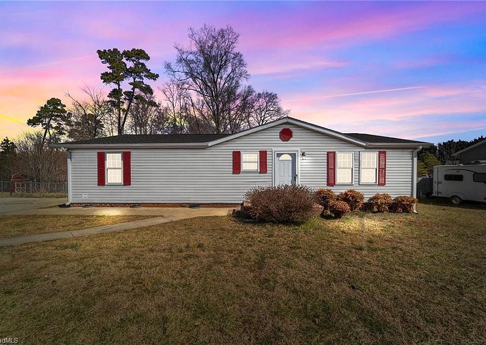 Discover this beautifully updated 3-bedroom, 2-bath manufactured home at 5495 Hitching Post Dr in Gibsonville! Featuring a brand-new deck, a stylish kitchen with new cabinets, granite countertops, and stainless steel appliances, this home is move-in ready. Enjoy fresh flooring and paint throughout, along with two fully renovated bathrooms. The spacious .35-acre lot has a fenced backyard includes a storage shed, perfect for extra space. A large paved driveway offers ample parking. Don’t miss this fantastic opportunity—schedule your showing today!