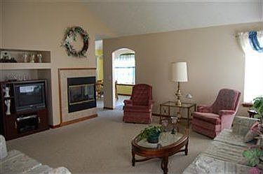 Wonderful one floor living! Exceptionally nice end unit with 2 bedrooms and 2 full baths. Large vaulted eat in kitchen with all appliances, breakfast bar, pantry, sliding door to private patio and 3 sided fireplace that is viewed from kithen and vaulted living room with plant shelf and inset for an entertainment center. Computer/flex room off kitchen. Master bedroom has a walk in closet and its own bath with dual sinks and soaking tub. 2.5 car garage with pull down stairs to attic for extra storage. Enjoy the exercise room, club house & swimming pool which is also included in the low monthly maintenance fee. Home warranty is being offered! Extra parking located next to unit.