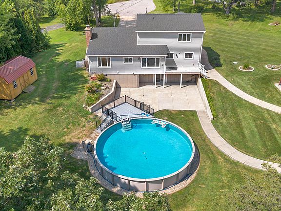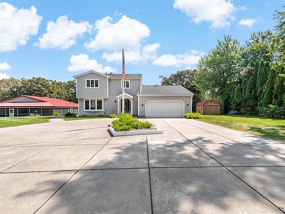 Unique property on 7.54 acres in Crown Point! Over 2,700 sq. ft. two-story, 3 bedrooms, 2.5 baths, & a partially finished basement w/sliding doors to a concrete patio. Main floor offers a den/office with wood-burning stove & laundry room. Kitchen features solid wood hickory cabinetry, granite countertops, new stainless steel appliances, & hickory hardwood floors throughout the main living space. Home has a 3-year-old roof w/complete tear-off. Furnace, A/C, and Generac generator are 9 years old. A 48' x 48' (2,304 sq. ft.) pole barn includes approx. 1,200 sq. ft. finished screened porch, plus interior radiant heated floors, partial kitchen, 2 baths, and shower room, garage door that has pull down screen. Also features a 30' round above-ground pool and 20' x 12' woodshed. Home is on Septic and Well. Close to major highways for commuting and close Downtown Crown Point and St. John. Many places to shop and restaurants close by.