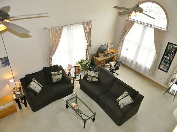 Location plus! Contemporary, open 2 story floor plan. Soaring, vaulted ceiling. Light and bright, sun filled rooms. First floor master bedroom with adjoining full bath. Eat-in kitchen with patio doors to deck. Great room/dining room open to second floor. Two bedrooms and full bath upstairs. Partial exposure with 2 egress windows and plumbed for third bath. Fully fenced yard. Sits high on the hill. Close to 173 shopping corridor and I-90 access.