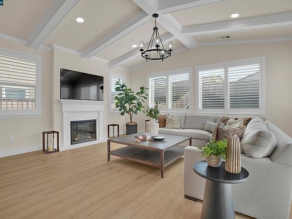 IT'S A BEAUTY! JUST LIKE A MODEL HOME! LARGE YARD! HONEY, STOP THE CAR! >>>FHA ASSUMABLE LOAN, 2.75% <<< (TO QUALIFIED BUYERS AND APPROVAL FROM EXISTING LENDER!!!) Located in Parkridge, The Hills - most commuter-friendly neighborhoods, minutes from Hwy 4, BART, Trader Joe’s, and Target, this sought-after Plan 4 features a contemporary open layout with vaulted cathedral ceilings and a downstairs junior suite with full bath. Over $150K in upgrades include 13-panel owned solar, custom stair railing, crown molding with ceiling beams, wainscoting wall accents, premium shutters, pantry with custom shelving, and more. Enjoy the electric fireplace with mantel, built-in TV, and custom bookcase in the loft—perfect for movie nights or relaxing. Thoughtfully designed with 2 sliding doors to the backyard (from both dining and living rooms), closet organizers, 220V car charger, and a landscaped yard with concrete patio, grass, pavers, and retaining wall. Just a short walk to the community park and scenic trails with breathtaking Mt. Diablo views. This is the most popular floor plan in the community—looks good and lives even better!