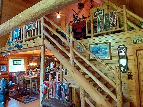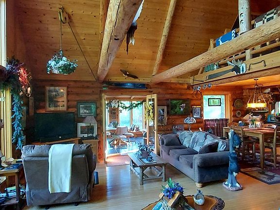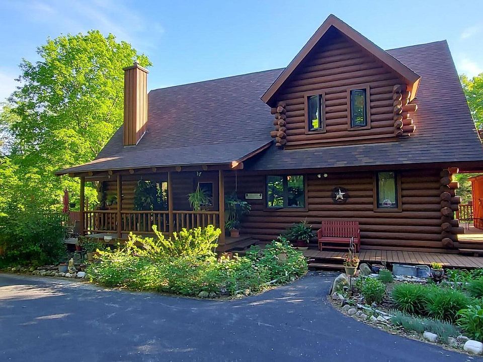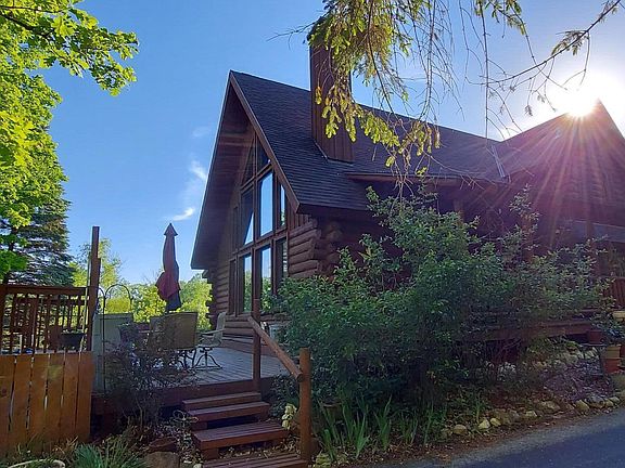 Follow the road into the enchanted forest and discover your new sanctuary. The log home has an inviting front porch leading into the spacious, open concept great room with a loft overlooking the living area. Master bedroom has a private deck, bathroom and walk-in closet. The four season sun room has views of the backyard and could easily be turned into a 3rd bedroom. The 2nd bedroom and bath with classic claw foot tub is easily accessible on the main floor. Enjoy the above ground pool and gazebo in summer. Attached garage is for 2 cars and detached garage for 1 car. Come and enjoy the beauty of Mother Nature and abundance of wildlife around this beautiful home.