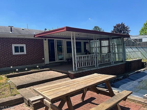 Looking for a brick ranch? Deep lot 83x375. Decorative fireplace in living room with bay window. Kitchen has been remodeled with oak cabinetry, ample storage and breakfast bar. Open into dining area. Sun room has bay window and sliding doors to covered patio- pavered floor 20x12 that faces the backyard. Chain link fence surrounds in-ground pool that hasn't been used in many years. Seller does not know condition of swimming pool. Detached 2 car garage (new metal roof). Concrete driveway.