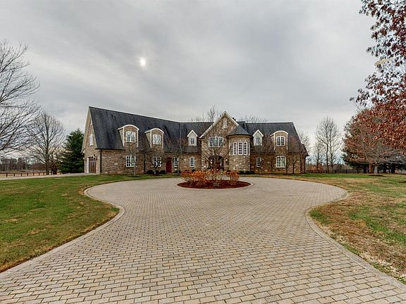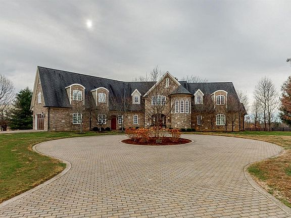 Magnificently nestled behind mature trees (and directly across the road from Sheikh Hamdan bin Rashid Al Maktoum's Shadwell Farm) this estate property offers exquisite accommodations for both you and your bloodstock. Sited with privacy in mind, the well-constructed French revival-style home has four bedrooms (including a first-floor primary bedroom), four full baths, and one half-bath. This includes a fabulous second-story apartment (accessed from its own entrance) complete with kitchenette. A second well-built and classically designed home (previous personal residence of local homebuilder Robert Wyse) is 4BR/3.5BA. The 10-stall stone barn - one of the finest I've ever had the privilege to market - has vaulted ceilings, skylights, and a design focused on equine safety & health. Also: four fields, one paddock, & four-bay equipment building. All of this & more is secured behind two tree-lined, gated entrances (from two roads!), less than 2-miles from Keeneland Race Course & the airport!
