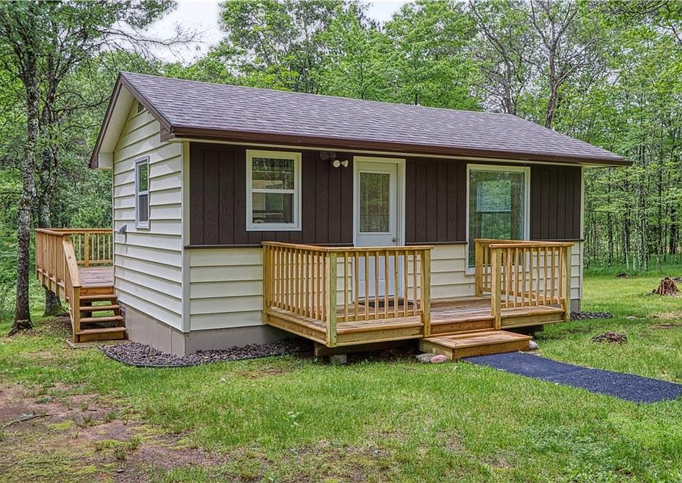 Discover tranquility in the heart of the Northwoods, surrounded by pristine lakes and lush forests. This cozy abode has been meticulously updated, featuring a modern open-concept design that maximizes natural light with abundant windows offering stunning views of the tree canopy. Step outside onto a brand-new deck, perfect for enjoying the park-like setting and the mature trees that envelop the property. Entertain guests around the beautifully landscaped firepit and sitting area, or utilize the ample space available for an additional building, such as a detached garage or storage unit. Inside, there is a comfortable bedroom with closet space and a convenient stack washer and dryer. Every inch of this retreat has been thoughtfully upgraded, from the electrical system to the stylish flooring, ensuring it's ready for you to move in and start enjoying immediately. Come experience the perfect blend of modern comfort & natural beauty in this updated haven. Acreage is approximate.