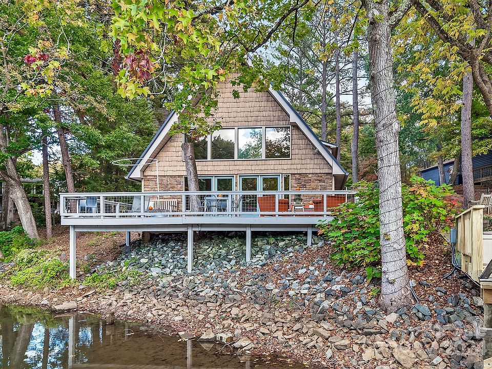 Beautiful private waterfront home on Lake Wylie. Situated on over 1.2 wooded acres, this home boasts Lake Living and Water Fun. Private dock and boat lift are steps away. Large deck perfect to watch the sunset or enjoy morning coffee. Great for a get away retreat or full time living. All new Heat and Air Systems installed in 2024 as well as Secure Private remote gate. Great room features open floor plan with new gas logs, vaulted ceiling and expansive views of big sky and cove waters. Kitchen has breakfast bar that seats 4 and adjacent dining area. Remote shades in the Great Room. Primary Bedroom off Great Room features Walk- in closet and new touches to primary bath. Upper floor find 2 bedrooms, full bath and open loft with lake views. Detached garage has workshop and large unfinished loft that could be finished for office or extra living space. Trimlight Lighting customizable on your app. Entrance to the house is on the upper level from the garage.