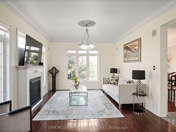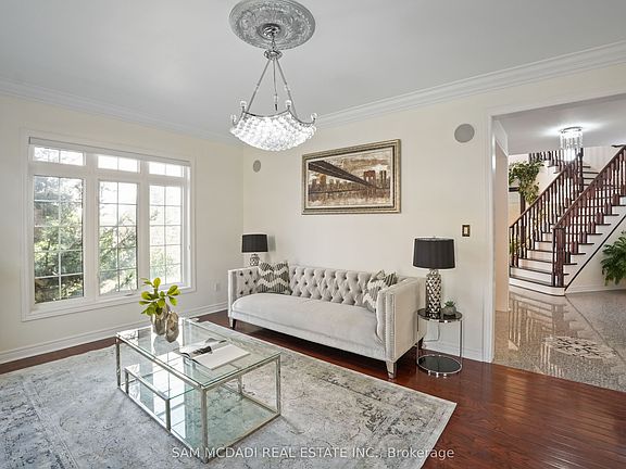 Corner lotImpressive two-storey foyerElegant tile inlayRich hardwood floorsPot lightsCharming bay windowsSeparate dining room