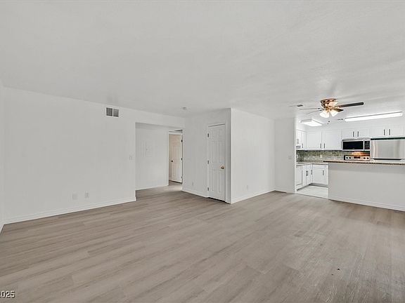 Experience comfort and convenience in this beautifully updated condo nestled within a secure, guard-gated community offering resort-style amenities. Inside, enjoy fresh upgrades including new flooring, modern lighting, and crisp paint throughout. The kitchen features granite countertops, white cabinetry, stainless steel appliances, and a convenient breakfast bar. Bathrooms include matching granite finishes, and the bedrooms offer generous closet space. A private balcony provides the perfect spot to relax or entertain all just minutes from the Las Vegas Strip, shops, and dining.
